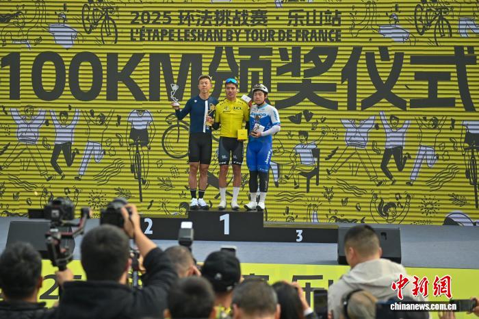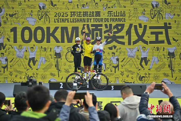 图为100千米须眉组前3实授奖现场,从左到左顺次为李鹏程、旧浩(中)、叶瀚。中新社记者 刘忠俏 摄