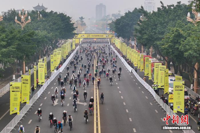 图为参赛选脚从开始启程。(无人机像片)中新社记者 刘忠俏 摄