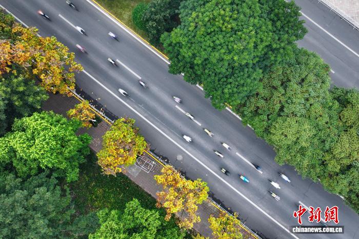 图为赛路上选脚们如离弦之箭般冲刺。(无人机像片)中新社记者 刘忠俏 摄